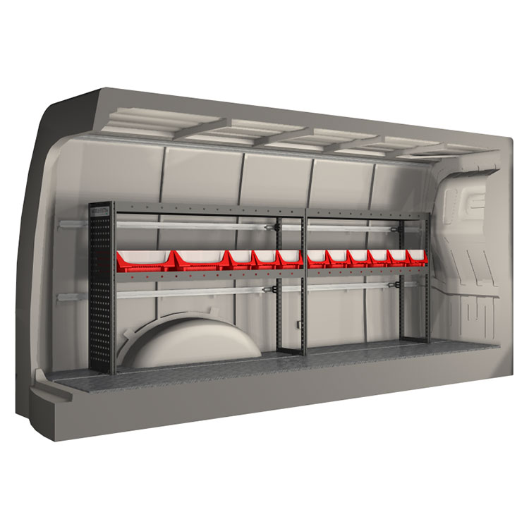 The racking has been specially designed to ensure the optimum fit to the vehicle, as well as the best possible functionality and safety. It has been developed for professional use, is flexible and is intended for service jobs in various types of business. All shelves are equipped with rubber mats, and all drawers with foam plastic liners. Assembly material is included.