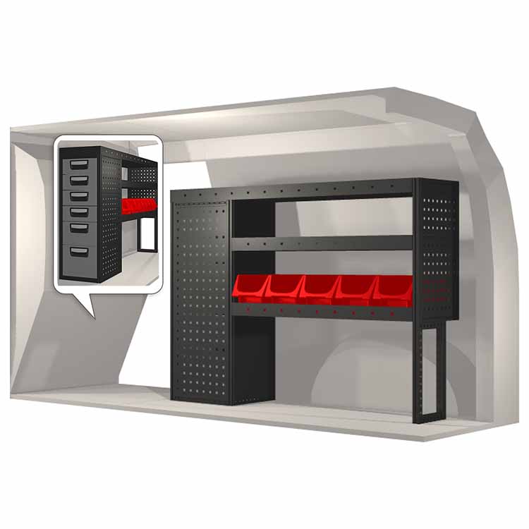Innredningene er konstruert slik at de passer inn i bilene og tar hensyn til funksjon og sikkerhet. De er utviklet for profesjonelt bruk og fleksibiliteten gjør at den kan tilpasses alle yrkesgrupper. Hyller er utstyrt med gummimatter og skuffene har skumplastinnlegg. Monteringsmateriell er inkludert.