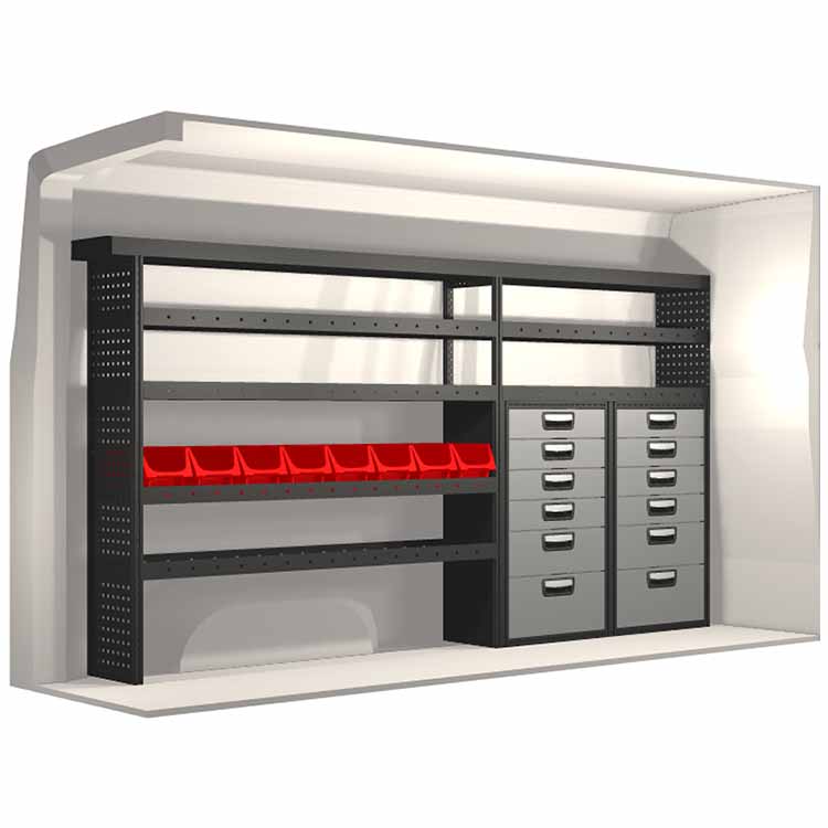 Innredningene er konstruert slik at de passer inn i bilene og tar hensyn til funksjon og sikkerhet. De er utviklet for profesjonelt bruk og fleksibiliteten gjør at den kan tilpasses alle yrkesgrupper. Hyller er utstyrt med gummimatter og skuffene har skumplastinnlegg. Monteringsmateriell er inkludert.