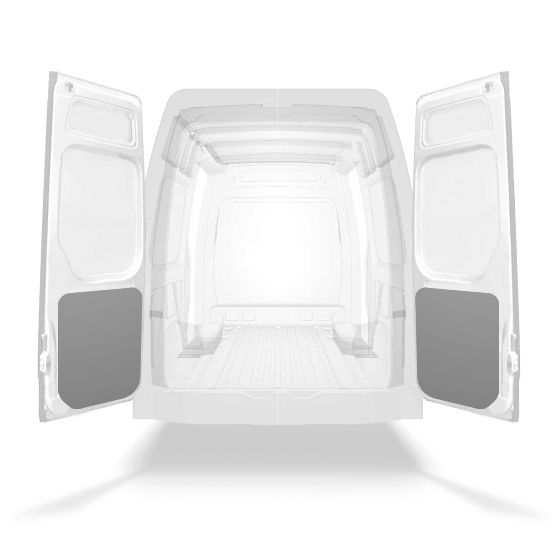 Lett nedre panelkledning til bakdør i Mercedes Sprinter med dobbeltdører. Dørkledningen har en design som gir en profesjonell utførelse på innsiden, den beskytter varebilen og er enkel å tørke av.