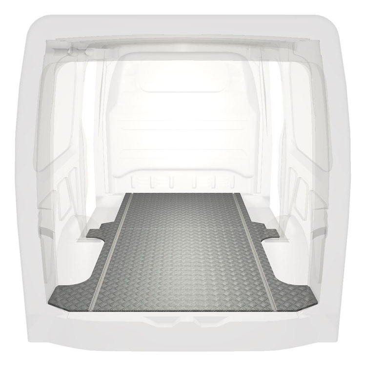 Lett og robust standard varebilgulv til Mercedes Sprinter sklisikker tråplate i aluminium og lastskinner (langsgående) for rask og sikker installasjon av hyllesystemer og annet tilbehør.