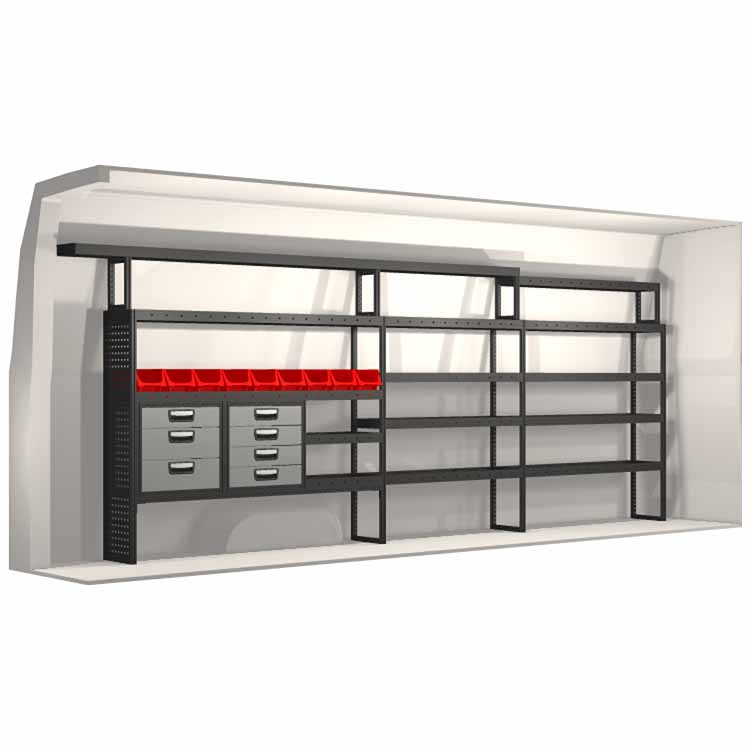 Innredningene er konstruert slik at de passer inn i bilene og tar hensyn til funksjon og sikkerhet. De er utviklet for profesjonelt bruk og fleksibiliteten gjør at den kan tilpasses alle yrkesgrupper. Hyller er utstyrt med gummimatter og skuffene har skumplastinnlegg. Monteringsmateriell er inkludert.
