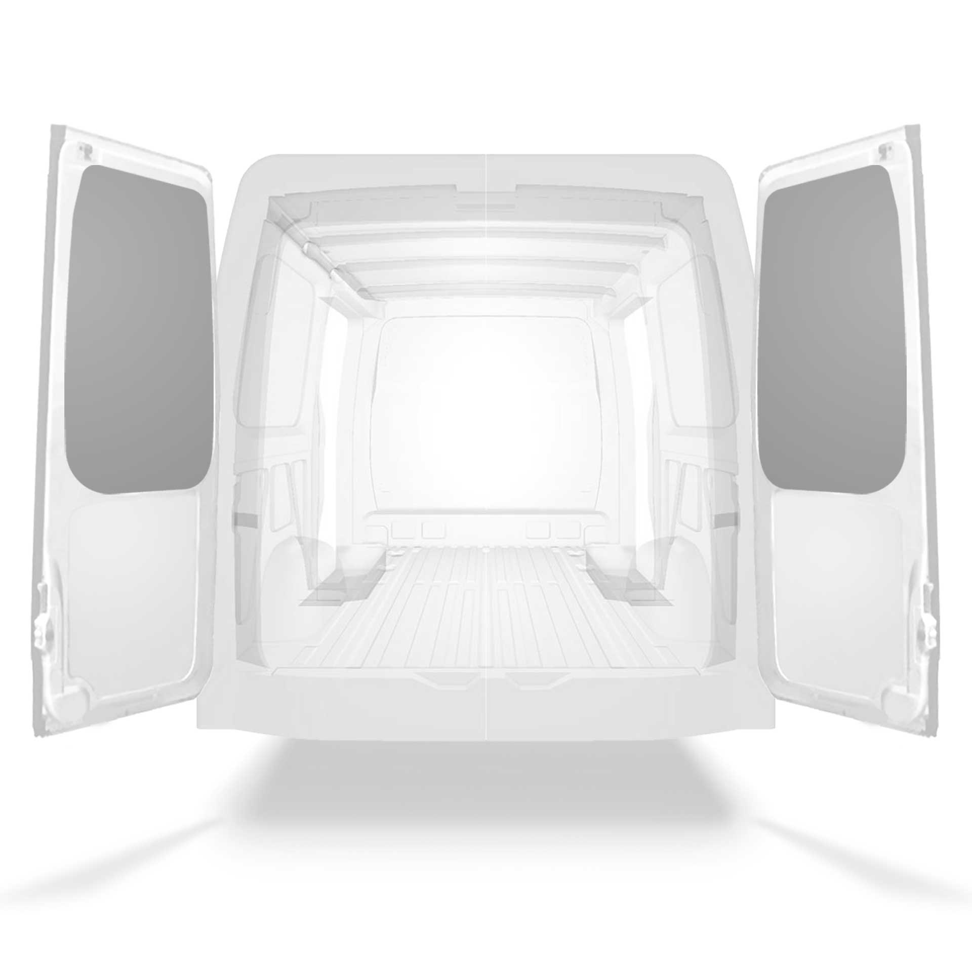 Lett øvre panelkledning til bakdør i Mercedes Sprinter med dobbeltdører. Dørkledningen har en design som gir en profesjonell utførelse på innsiden, den beskytter varebilen og er enkel å tørke av.
