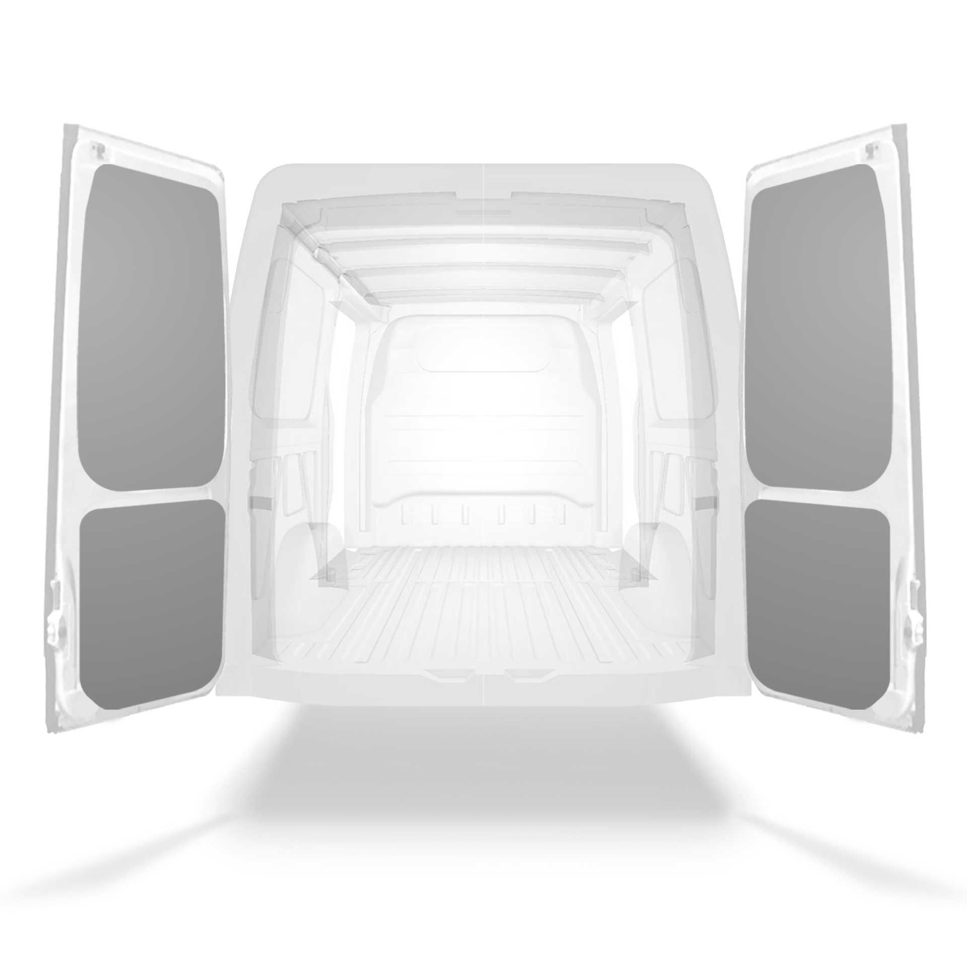 Lett panelkledning til bakdør i Mercedes Sprinter med dobbeltdør. Dørkledningen har en design som gir en profesjonell utførelse på innsiden, den beskytter varebilen og er enkel å tørke av.