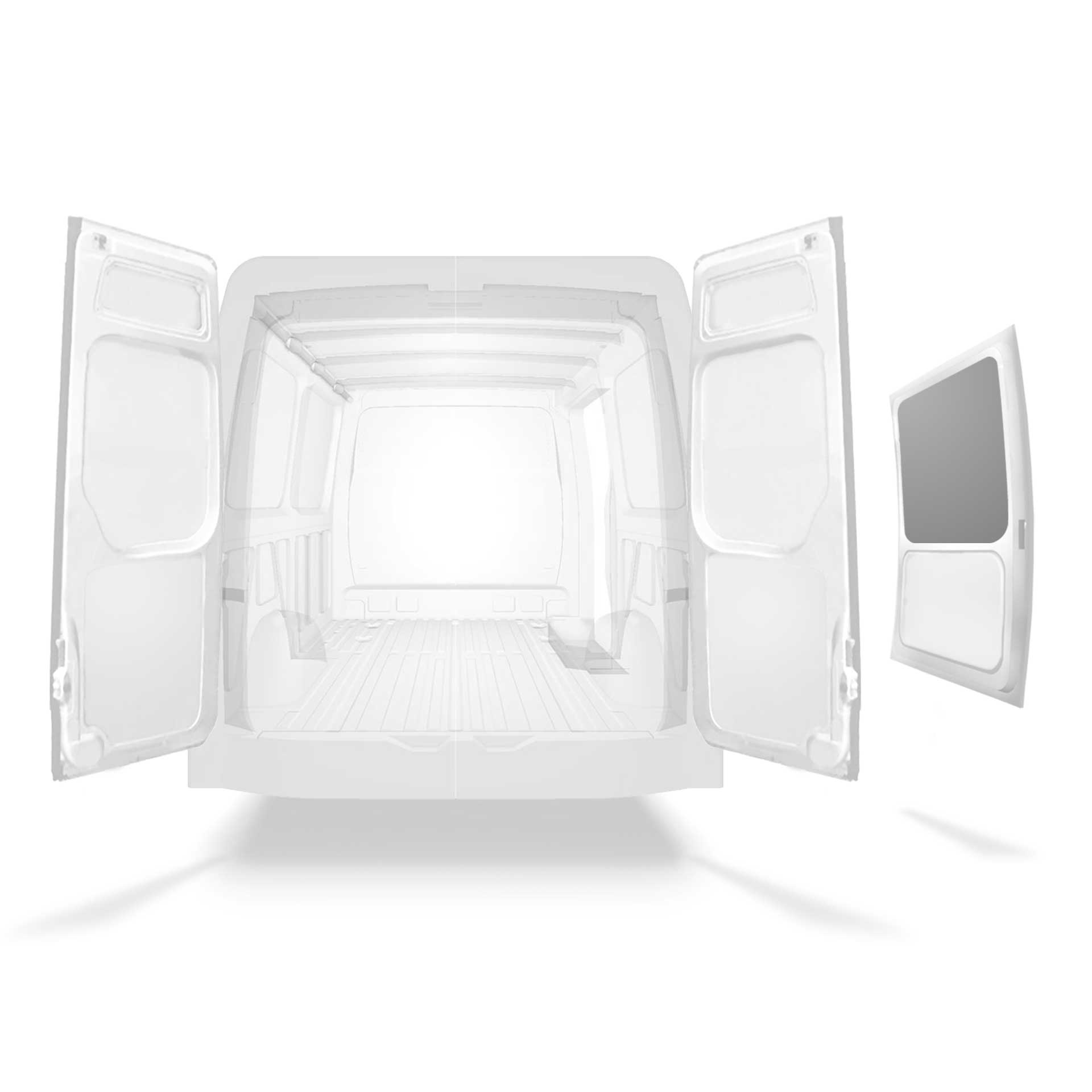 Lett kledning til den øvre delen av sidedøren i Mercedes Sprinter med høyre sidedør. Kledningen gir mindre slitasje på interiøret og bidrar til å sikre varebilens gjenverdi.