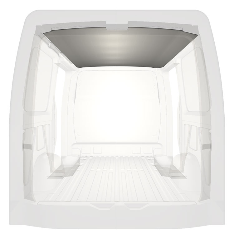 Lett kledning til taket i Mercedes Sprinter. Takkledningen gir en lys og profesjonell utførelse innvendig og et trivelig arbeidsmiljø.