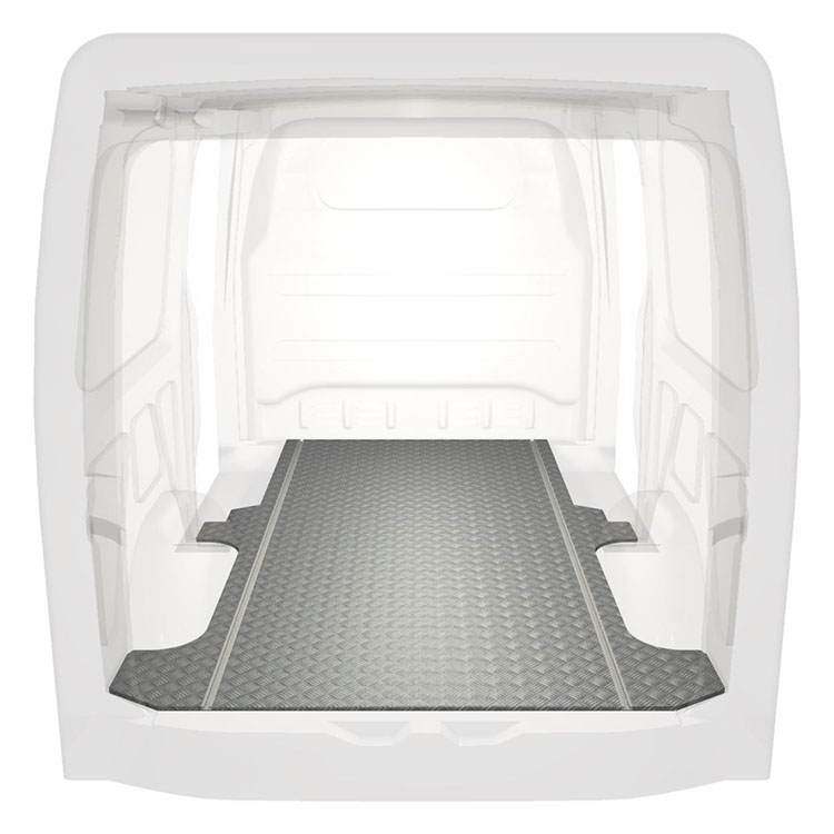 Lett og robust ekstra langt gulv til Mercedes Sprinter med sklisikker tråplate i aluminium og lastskinner (langsgående) for rask og sikker installasjon av hyllesystemer og annet tilbehør.