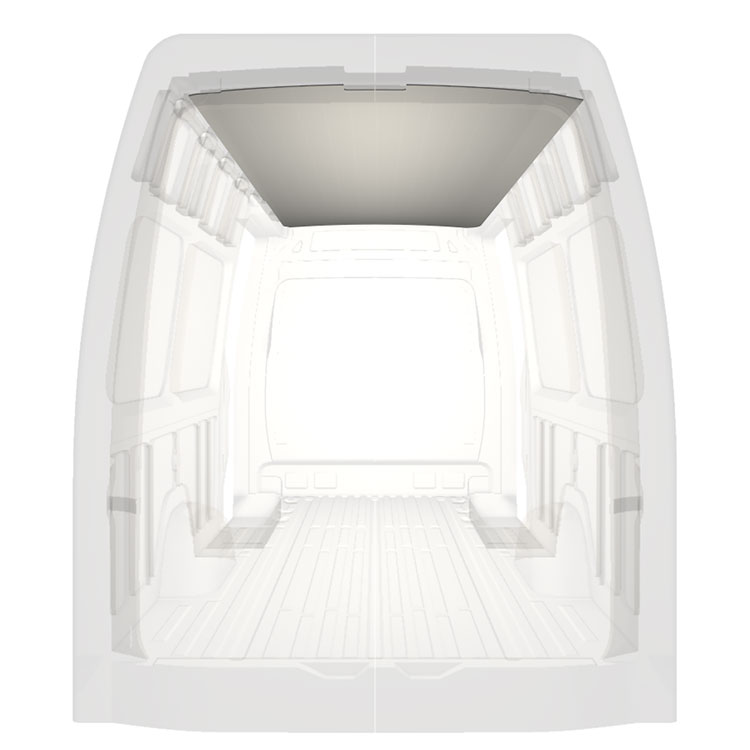 Lett kledning til taket i Mercedes Sprinter. Takkledningen gir en lys og profesjonell utførelse innvendig og et trivelig arbeidsmiljø.