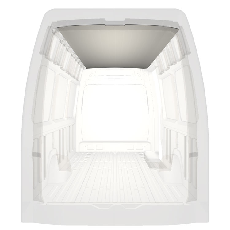 Lett kledning til taket i Mercedes Sprinter. Takkledningen gir en lys og profesjonell utførelse innvendig og et trivelig arbeidsmiljø.