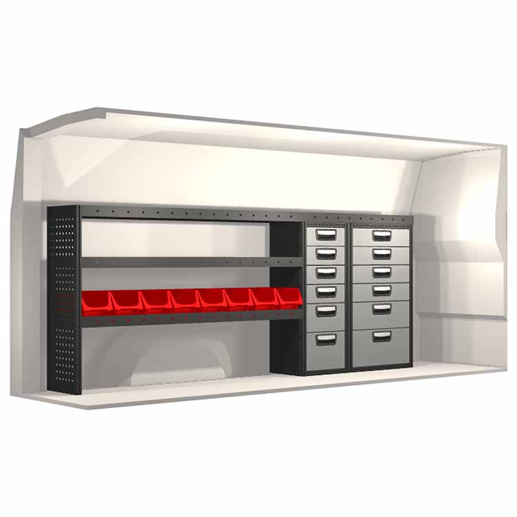 Innredningene er konstruert slik at de passer inn i bilene og tar hensyn til funksjon og sikkerhet. De er utviklet for profesjonelt bruk og fleksibiliteten gjør at den kan tilpasses alle yrkesgrupper. Hyller er utstyrt med gummimatter og skuffene har skumplastinnlegg. Monteringsmateriell er inkludert.