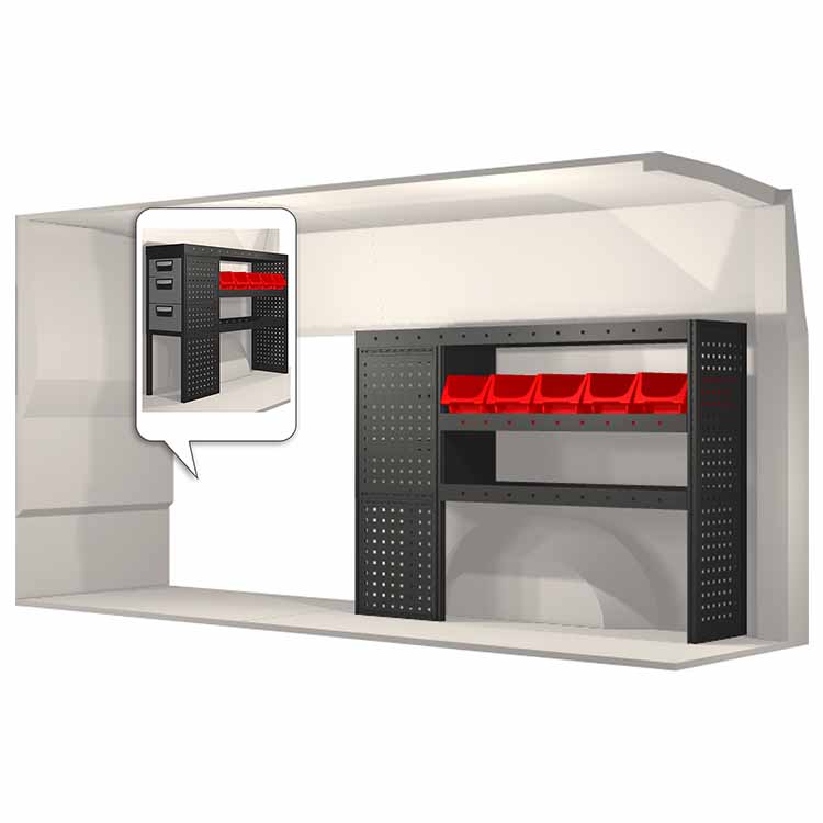 Innredningene er konstruert slik at de passer inn i bilene og tar hensyn til funksjon og sikkerhet. De er utviklet for profesjonelt bruk og fleksibiliteten gjør at den kan tilpasses alle yrkesgrupper. Hyller er utstyrt med gummimatter og skuffene har skumplastinnlegg. Monteringsmateriell er inkludert.