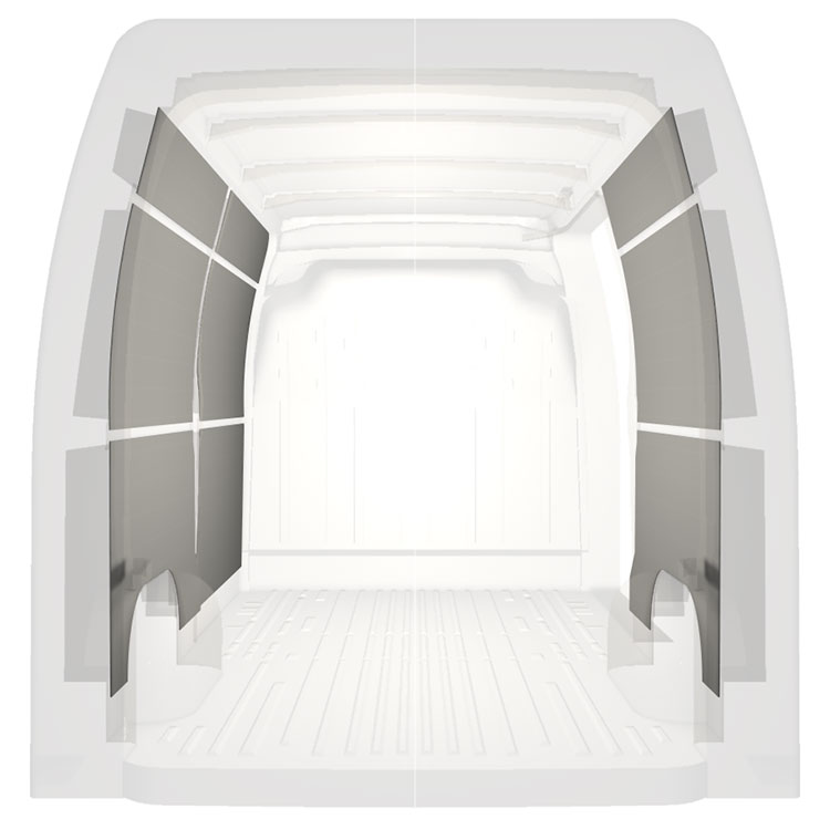 For å optimalisere vekten passer den prefabrikkerte varebilkledningen bare i rommet mellom bjelkene i kjøretøyet. På den måten er de ikke i veien og gir maksimalt med plass.