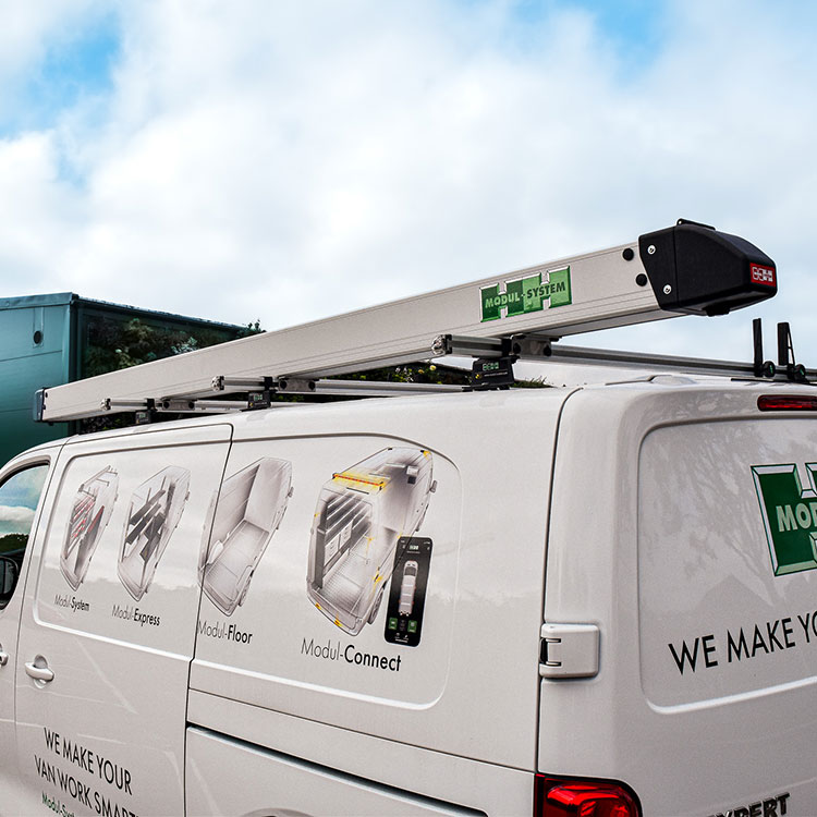 Rørbeholderen er rask og enkel å montere i T-sporet til takskinnene fra Modul-System. For å installere denne rørholderen kreves minst tre takbøyler.