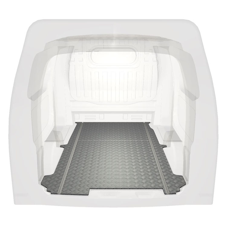 Lett og robust standard varebilgulv til Nissan NV200 sklisikker tråplate i aluminium og lastskinner (langsgående) for rask og sikker installasjon av hyllesystemer og annet tilbehør.