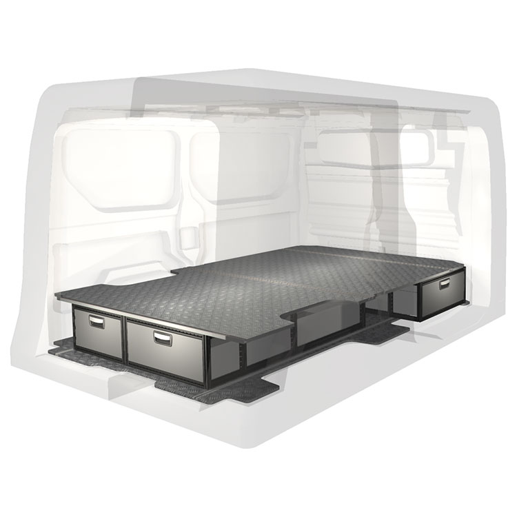 Kitet är designat för installation ovanpå ett Modul-Floor, där det undre golvets skenor nyttjas för en icke-förstörande installation. Dubbelgolvets skenor möjliggör enkelt montage av fordonsinredning och kantlister bidrar till en snygg finish.