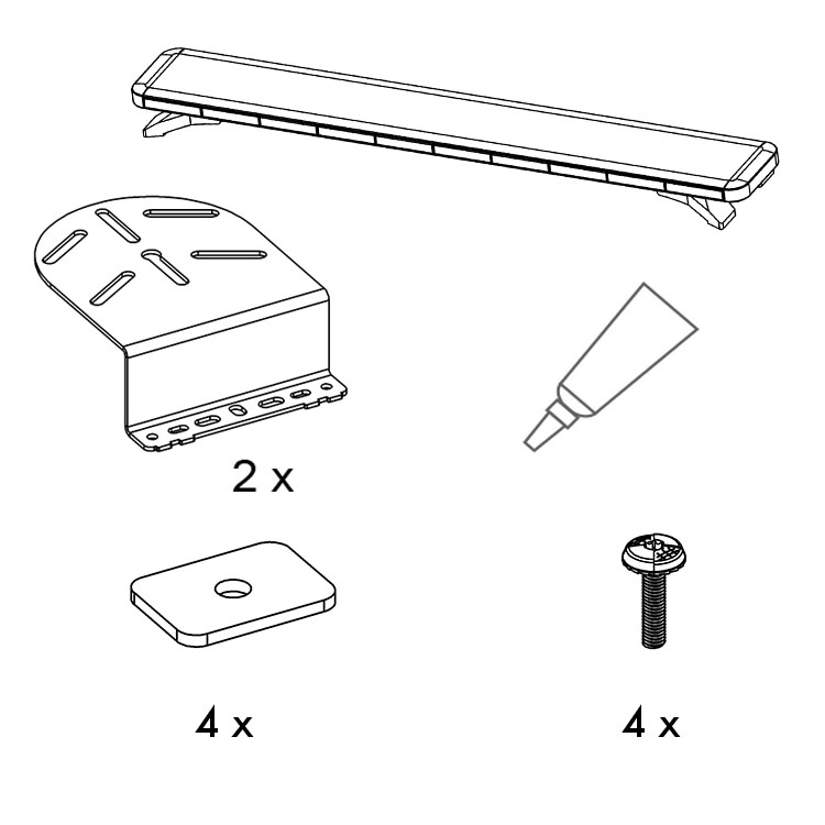 Sett bestående av én lysskinne og et komplett sett braketter for montering direkte i kjøretøyets originale festepunkter. Ved å benytte de integrerte festepunktene slipper man å bore unødige hull i kjøretøyets karosseri. Dermed er det ingen risiko for korrosjon, og kjøretøyets gjenverdi er sikret.