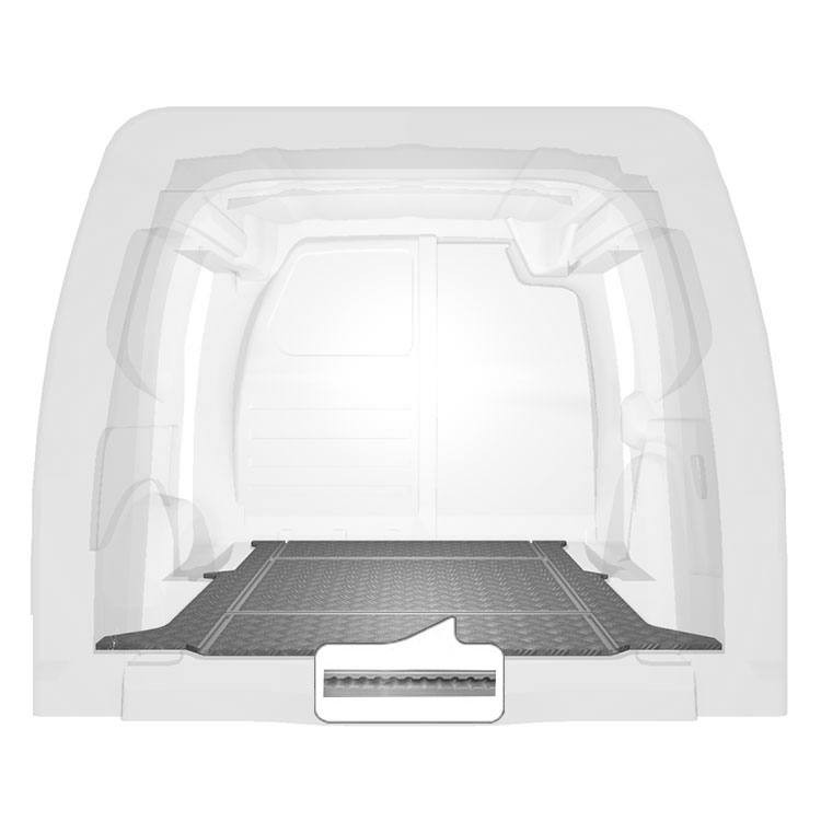 Lett og robust varebilgulv med tverrgående skinner til Mercedes Citan / Renault Kangoo 21- med sklisikker tråplate i aluminium og lastskinner (langsgående og tverrgående) for rask og sikker installasjon av hyllesystemer og tilbehør.