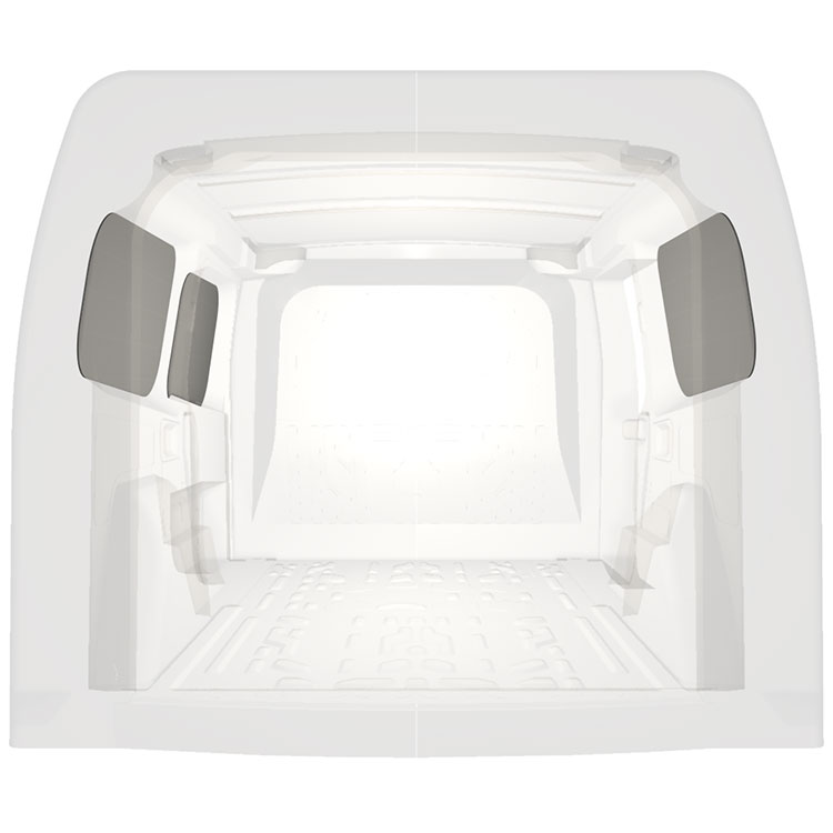 For å optimalisere vekten passer den prefabrikkerte varebilkledningen bare i rommet mellom bjelkene i kjøretøyet. På den måten er de ikke i veien og gir maksimalt med plass.