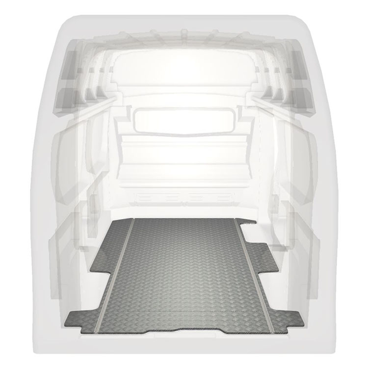 Lett og robust ekstra langt gulv til Renault Trafic / Opel Vivaro / Fiat Talento / Nissan NV300 med sklisikker tråplate i aluminium og lastskinner (langsgående) for rask og sikker installasjon av hyllesystemer og annet tilbehør.