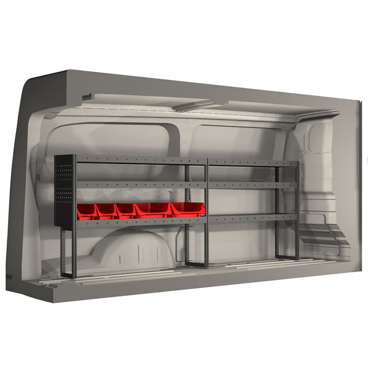 The racking has been specially designed to ensure the optimum fit to the vehicle, as well as the best possible functionality and safety. It has been developed for professional use, is flexible and is intended for service jobs in various types of business. All shelves are equipped with rubber mats, and all drawers with foam plastic liners. Assembly material is included.