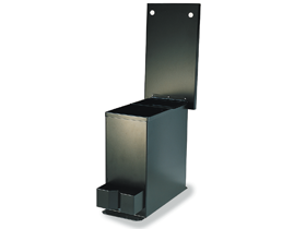 Kombinationsbord med uppfällbart lock/bordsskiva. I förvaringsutrymmet finns ett löstagbart pennfack och på utsidan två flaskhållare. Locket/bordsskivan är belagd med grå filtmatta.