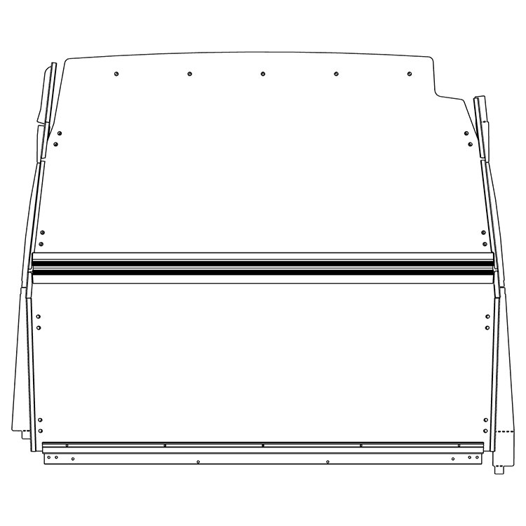 The bulkhead, made from sandwich material, is designed to optimize the space for the driver. The connection profile on the middle has a M8 t-tack, which can be utilized for attaching racking or other accessories.