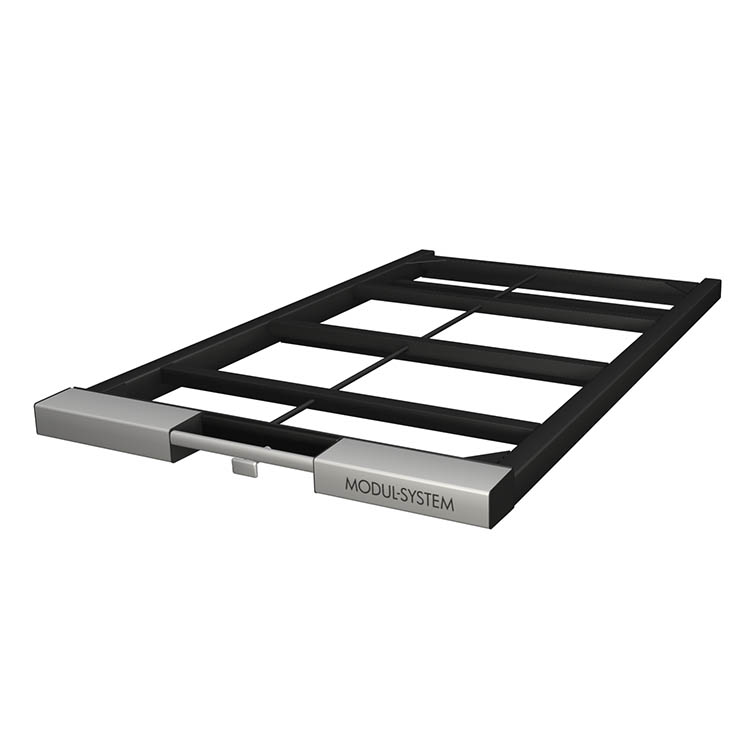 Lätt och robust underrede i ultrahöghållfast stål och front i anodiserad aluminium. Underredet är avsett för fast montering i fordonet och kan förses med en lastplatta för utökad funktionalitet.