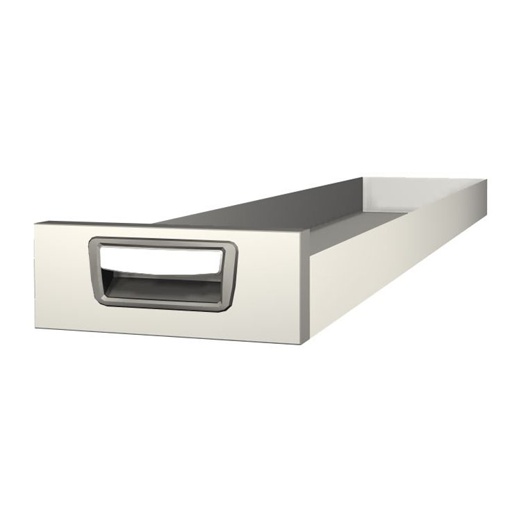 Robust ekstra lang skuff for montering i en skuffeenhetsramme. Skuffen er laget av aluminium og har kulelager som standard. Miksen av faste og rørlige lager gjør skuffen stabil og enkel å betjene.