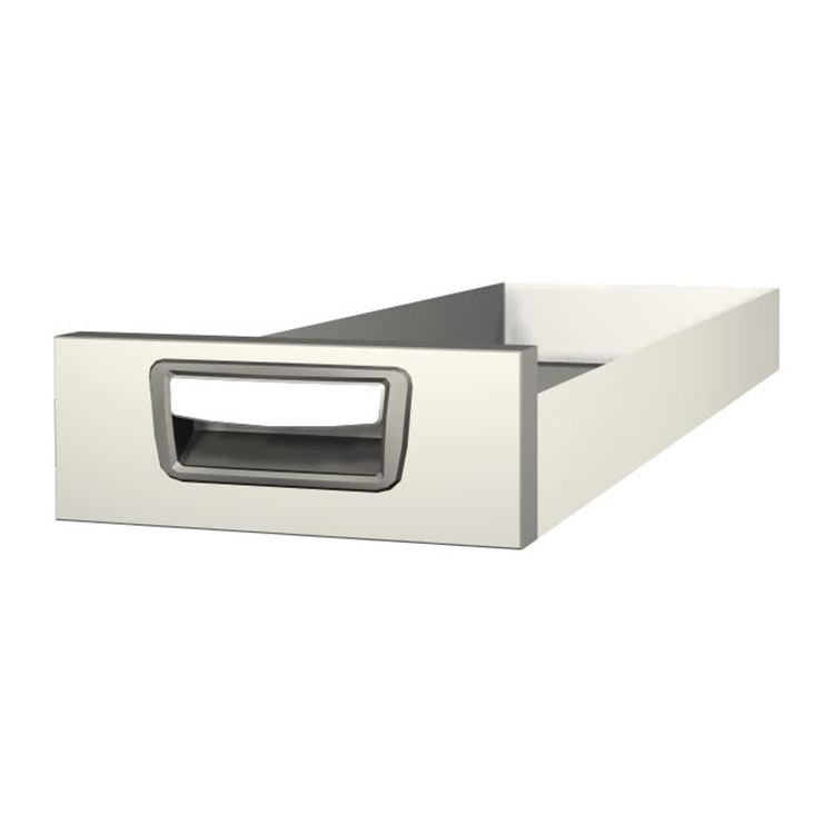 Robust ekstra lang skuff for montering i en skuffeenhetsramme. Skuffen er laget av aluminium og har kulelager som standard. Miksen av faste og rørlige lager gjør skuffen stabil og enkel å betjene.
