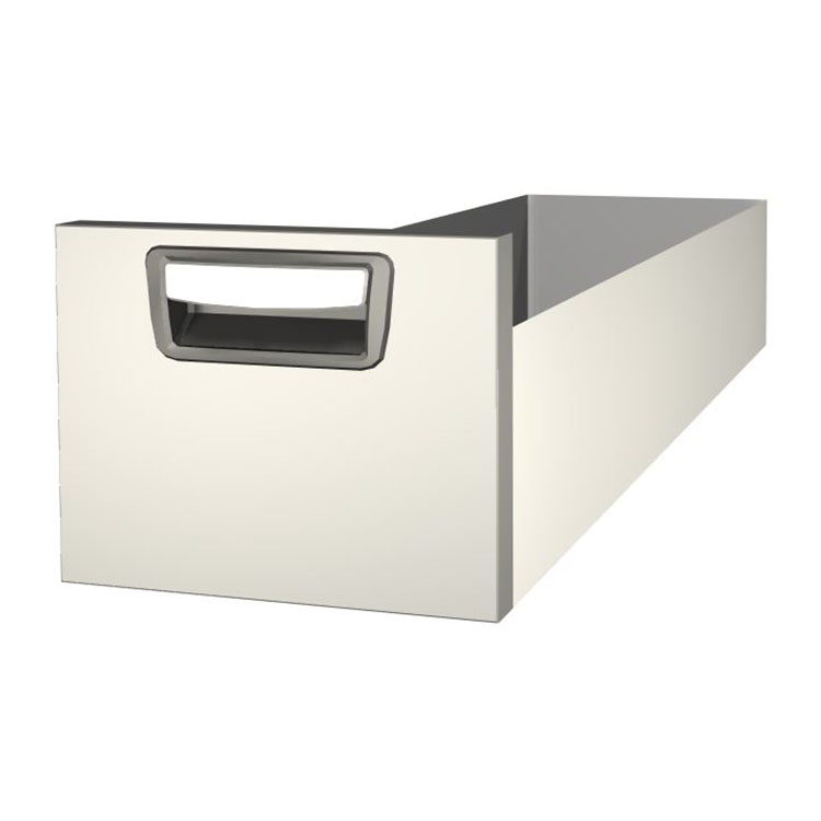 Robust ekstra lang skuff for montering i en skuffeenhetsramme. Skuffen er laget av aluminium og har kulelager som standard. Miksen av faste og rørlige lager gjør skuffen stabil og enkel å betjene.
