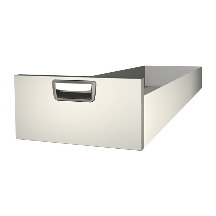 Robust ekstra lang skuff for montering i en skuffeenhetsramme. Skuffen er laget av aluminium og har kulelager som standard. Miksen av faste og rørlige lager gjør skuffen stabil og enkel å betjene.