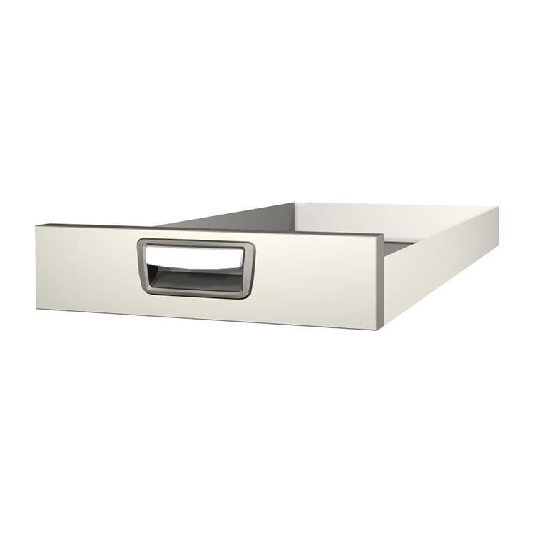 Robust ekstra lang skuff for montering i en skuffeenhetsramme. Skuffen er laget av aluminium og har kulelager som standard. Miksen av faste og rørlige lager gjør skuffen stabil og enkel å betjene.