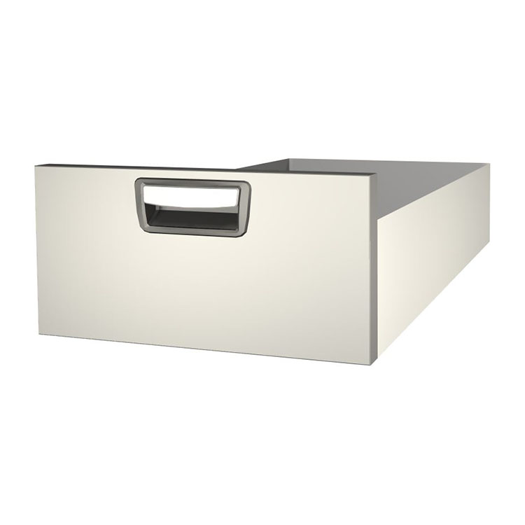 Robust ekstra lang skuff for montering i en skuffeenhetsramme. Skuffen er laget av aluminium og har kulelager som standard. Miksen av faste og rørlige lager gjør skuffen stabil og enkel å betjene.