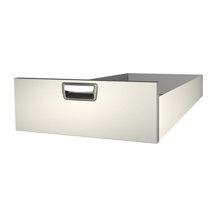 Robust ekstra lang skuff for montering i en skuffeenhetsramme. Skuffen er laget av aluminium og har kulelager som standard. Miksen av faste og rørlige lager gjør skuffen stabil og enkel å betjene.