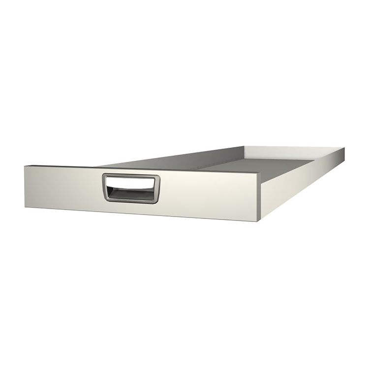 Robust ekstra lang skuff for montering i en skuffeenhetsramme. Skuffen er laget av aluminium og har kulelager som standard. Miksen av faste og rørlige lager gjør skuffen stabil og enkel å betjene.
