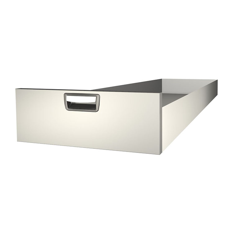 Robust ekstra lang skuff for montering i en skuffeenhetsramme. Skuffen er laget av aluminium og har kulelager som standard. Miksen av faste og rørlige lager gjør skuffen stabil og enkel å betjene.