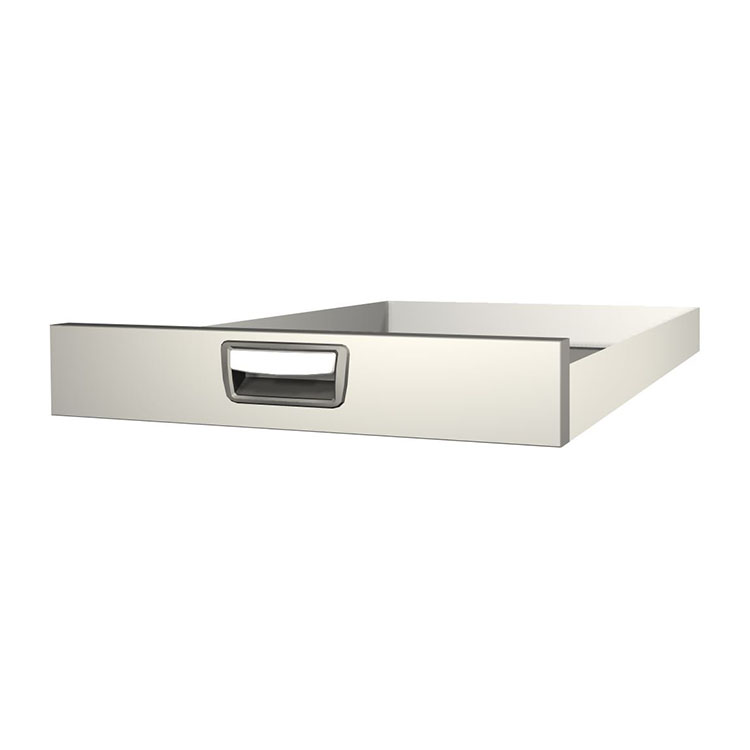 Robust ekstra lang skuff for montering i en skuffeenhetsramme. Skuffen er laget av aluminium og har kulelager som standard. Miksen av faste og rørlige lager gjør skuffen stabil og enkel å betjene.