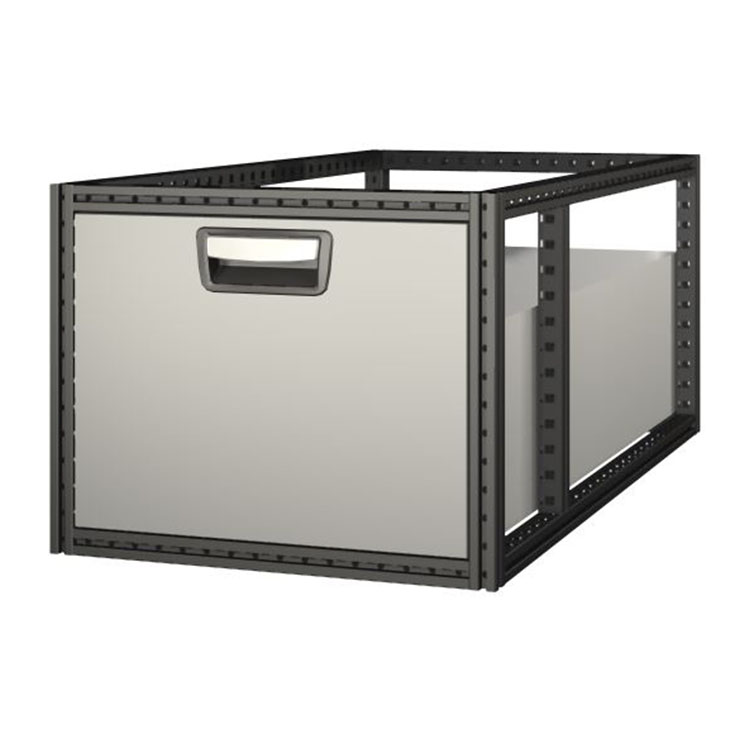 De ekstra lange skuffeenhetene har en ramme i ultrahøylegert stål og skuffer i aluminium. Skuffene er utrustet med kulelager som standard. Miksen av faste og rørlige lager gjør skuffen stabil og enkel å betjene.