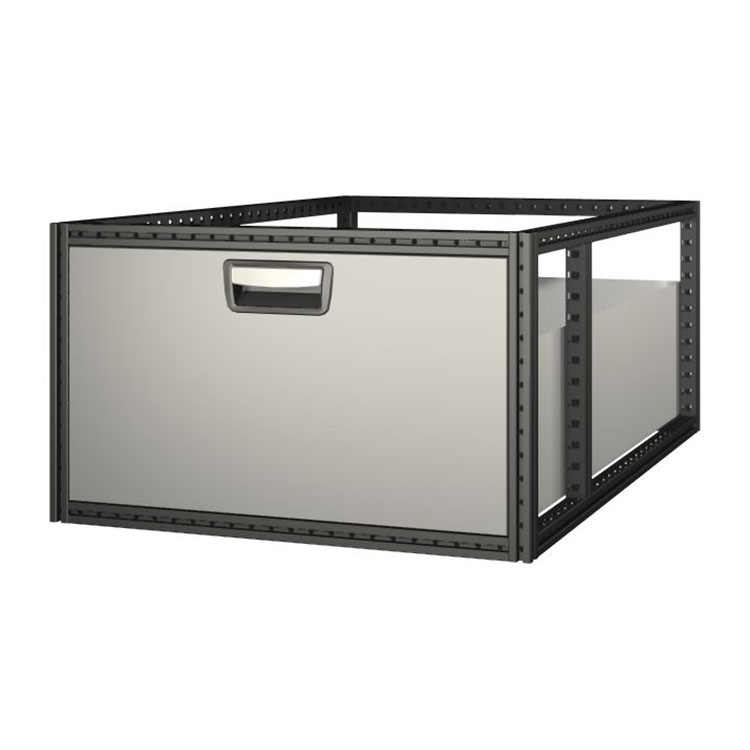 De ekstra lange skuffeenhetene har en ramme i ultrahøylegert stål og skuffer i aluminium. Skuffene er utrustet med kulelager som standard. Miksen av faste og rørlige lager gjør skuffen stabil og enkel å betjene.