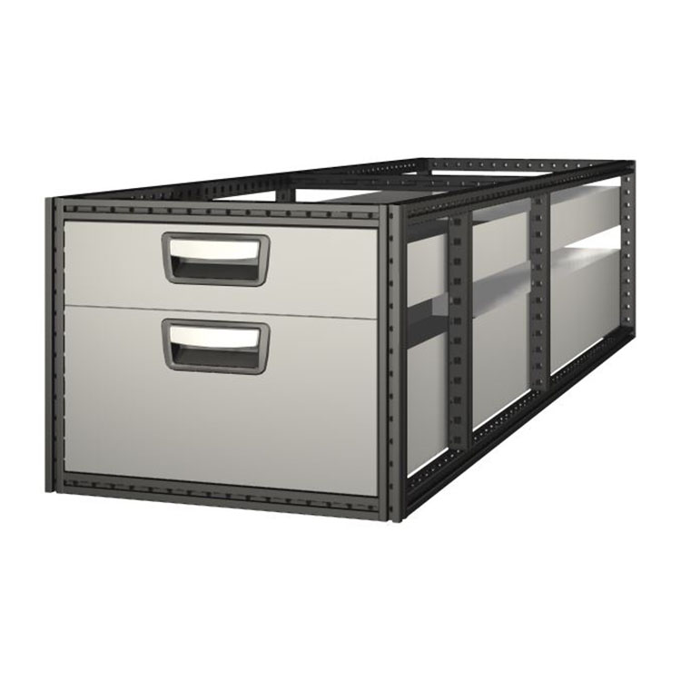 De ekstra lange skuffeenhetene har en ramme i ultrahøylegert stål og skuffer i aluminium. Skuffene er utrustet med kulelager som standard. Miksen av faste og rørlige lager gjør skuffen stabil og enkel å betjene.