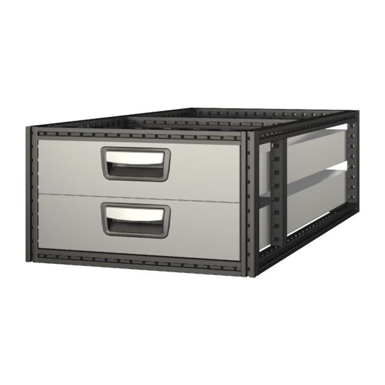 De ekstra lange skuffeenhetene har en ramme i ultrahøylegert stål og skuffer i aluminium. Skuffene er utrustet med kulelager som standard. Miksen av faste og rørlige lager gjør skuffen stabil og enkel å betjene.