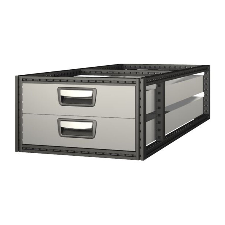 De ekstra lange skuffeenhetene har en ramme i ultrahøylegert stål og skuffer i aluminium. Skuffene er utrustet med kulelager som standard. Miksen av faste og rørlige lager gjør skuffen stabil og enkel å betjene.