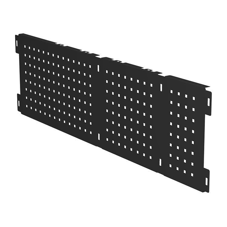 Verktøysplate for ekstra lang skuffeenhet. Den beskytter skuffen og bidrar til en pen design. Platen har 9 mm hull med sentrumavstand 34 mm, noe som muliggjør montering av verktøysholdere og annet tilbehør. Installeres med skruer (ikke inkludert).