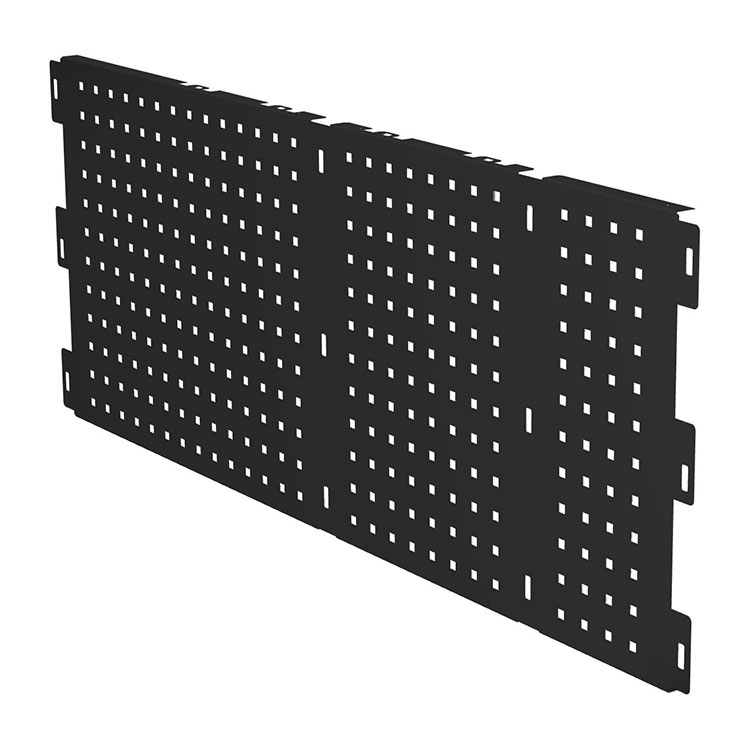 Verktøysplate for ekstra lang skuffeenhet. Den beskytter skuffen og bidrar til en pen design. Platen har 9 mm hull med sentrumavstand 34 mm, noe som muliggjør montering av verktøysholdere og annet tilbehør. Installeres med skruer (ikke inkludert).