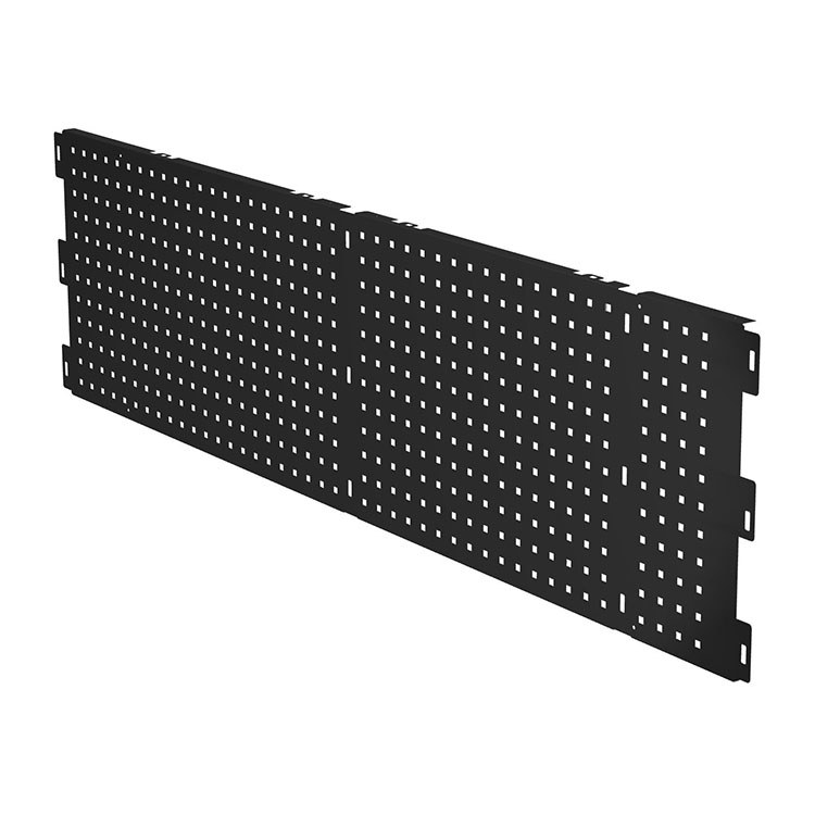 Verktøysplate for ekstra lang skuffeenhet. Den beskytter skuffen og bidrar til en pen design. Platen har 9 mm hull med sentrumavstand 34 mm, noe som muliggjør montering av verktøysholdere og annet tilbehør. Installeres med skruer (ikke inkludert).
