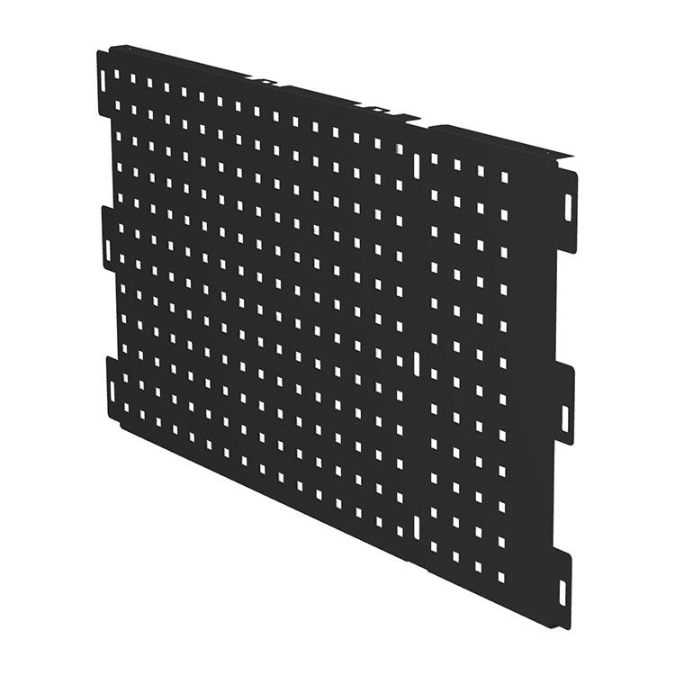 Verktøysplate for ekstra lang skuffeenhet. Den beskytter skuffen og bidrar til en pen design. Platen har 9 mm hull med sentrumavstand 34 mm, noe som muliggjør montering av verktøysholdere og annet tilbehør. Installeres med skruer (ikke inkludert).