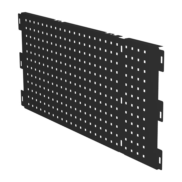 Verktøysplate for ekstra lang skuffeenhet. Den beskytter skuffen og bidrar til en pen design. Platen har 9 mm hull med sentrumavstand 34 mm, noe som muliggjør montering av verktøysholdere og annet tilbehør. Installeres med skruer (ikke inkludert).