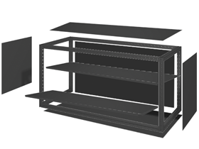 Skåpsats innehållande botten, tak, sidor samt rygg. Monteras på hjulhusstativ när man önskar skapa ett liggande skåp. Satsen är komplett inklusive monteringsmaterial och anpassad för skåpstomme 59560-03.