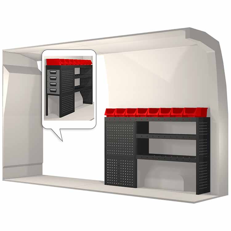 Innredningene er konstruert slik at de passer inn i bilene og tar hensyn til funksjon og sikkerhet. De er utviklet for profesjonelt bruk og fleksibiliteten gjør at den kan tilpasses alle yrkesgrupper. Hyller er utstyrt med gummimatter og skuffene har skumplastinnlegg. Monteringsmateriell er inkludert.