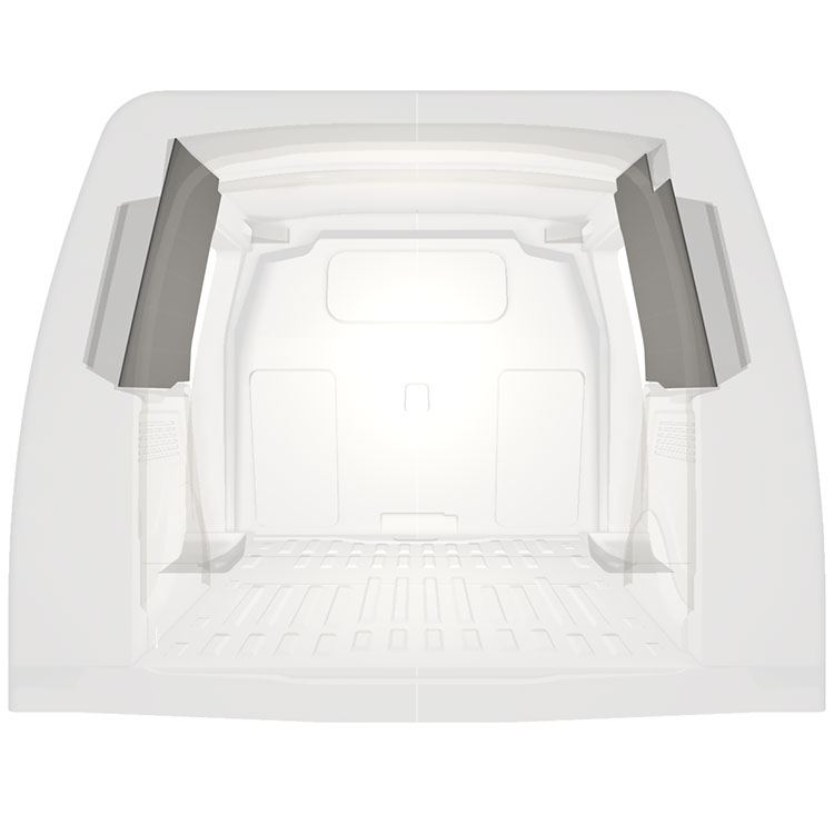 For å optimalisere vekten passer den prefabrikkerte varebilkledningen bare i rommet mellom bjelkene i kjøretøyet. På den måten er de ikke i veien og gir maksimalt med plass.